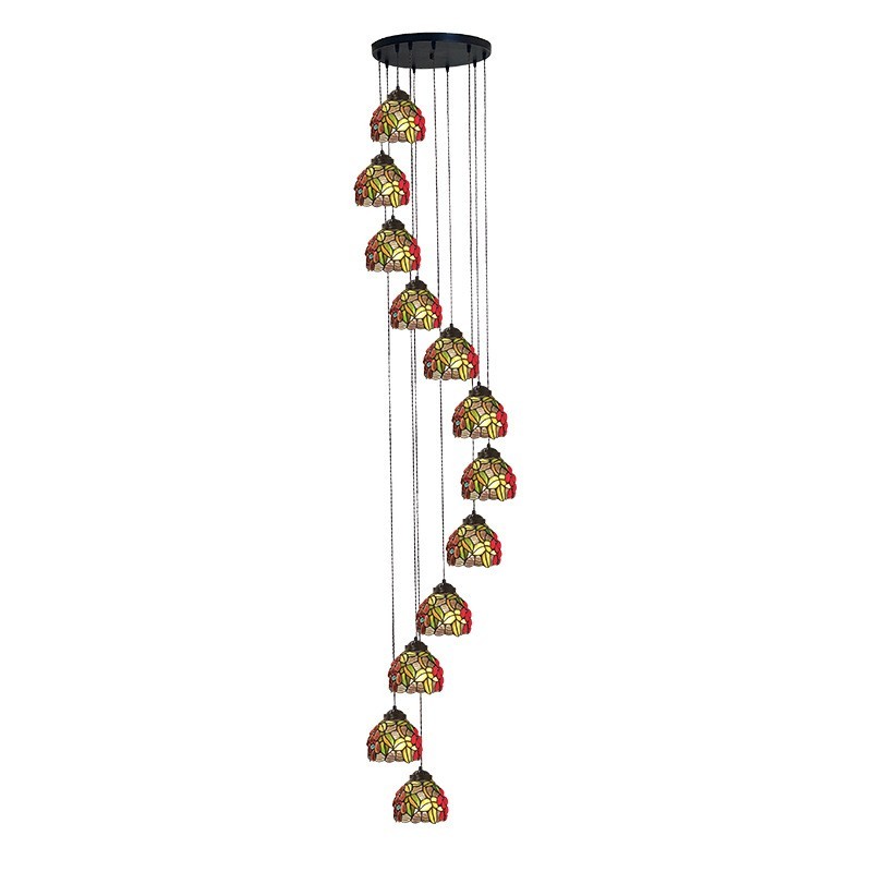 7-Inch Titian Orchard Baroque Extra Large 12-Light For High Ceilings Staircase Stairwell Tiffany Pendant Light