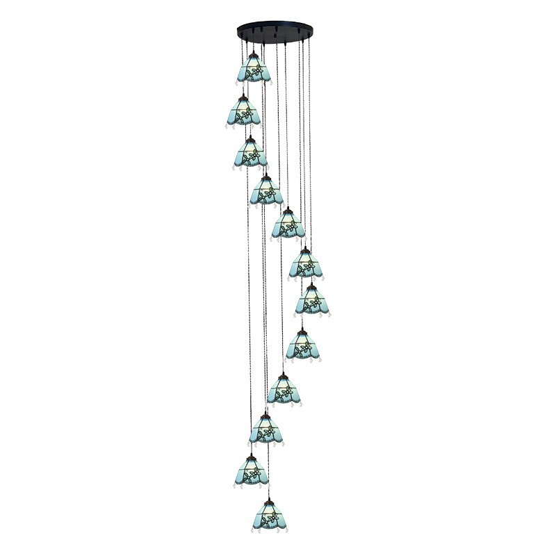 7-Inch Mediterranean Extra Large 12-Light For High Ceilings Staircase Stairwell Tiffany Pendant Light
