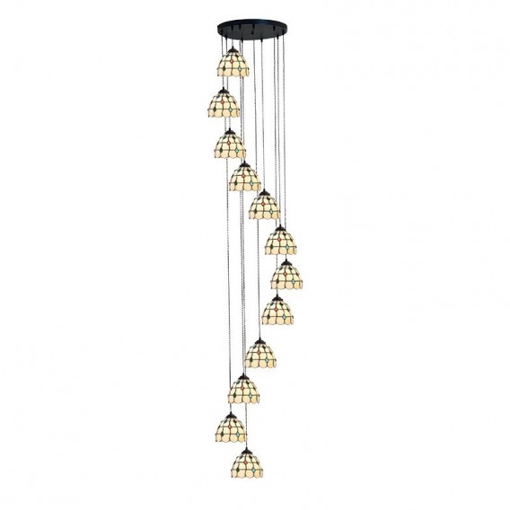 7-Inch Colorful Beaded Curtain Extra Large 12-Light For High Ceilings Staircase Stairwell Tiffany Pendant Light