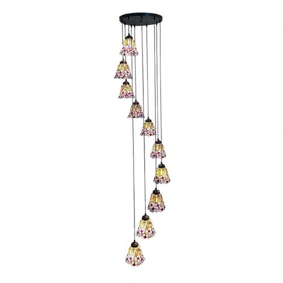 7-Inch Orchid Garden Extra Large 12-Light For High Ceilings Staircase Stairwell Tiffany Pendant Light
