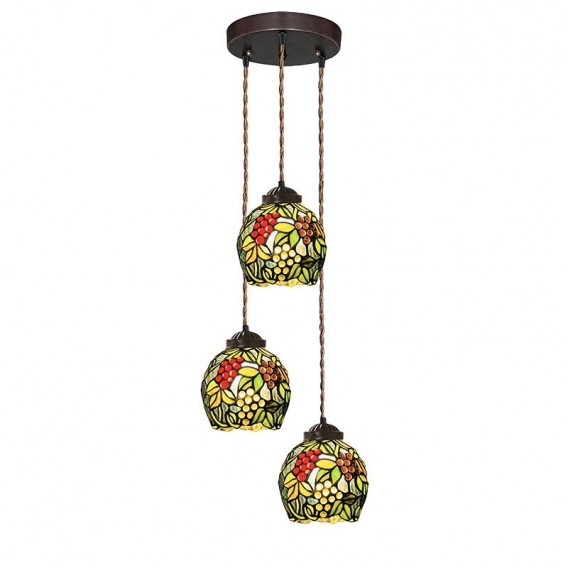 Rustic Grape 3-Light Stained Glass Bar Tiffany Pendant Light