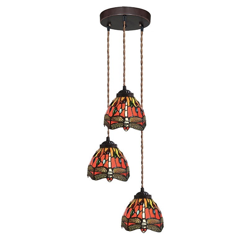 Rustic Red Dragonfly 3-Light Tiffany Pendant Light