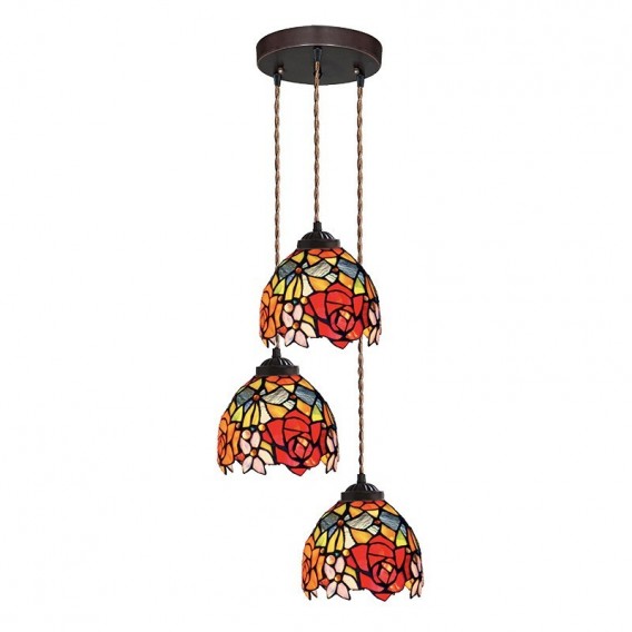 Rose 3-Light Romantic Tiffany Pendant Light