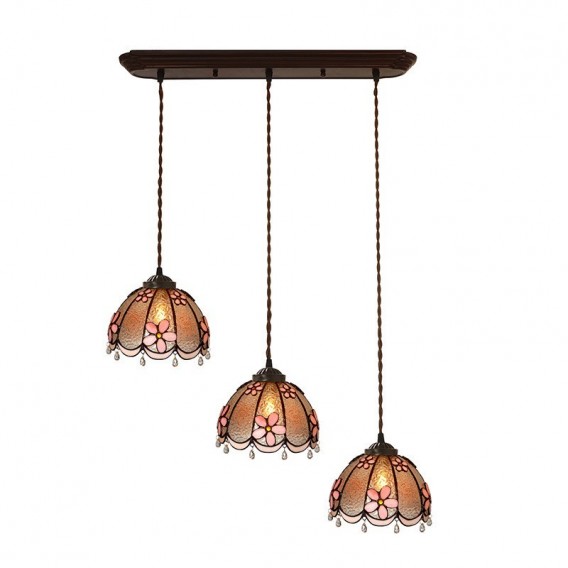 Pink Beauty 3-Light Linear Tiffany Pendant Light