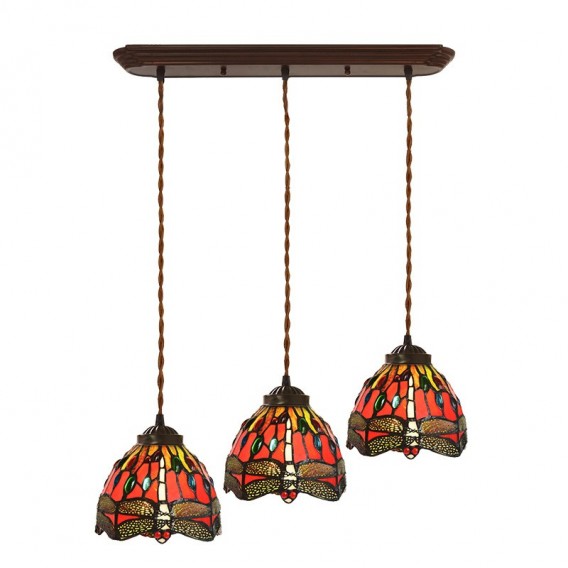 Red Dragonfly 3-Light Stained Glass Tiffany Pendant Light