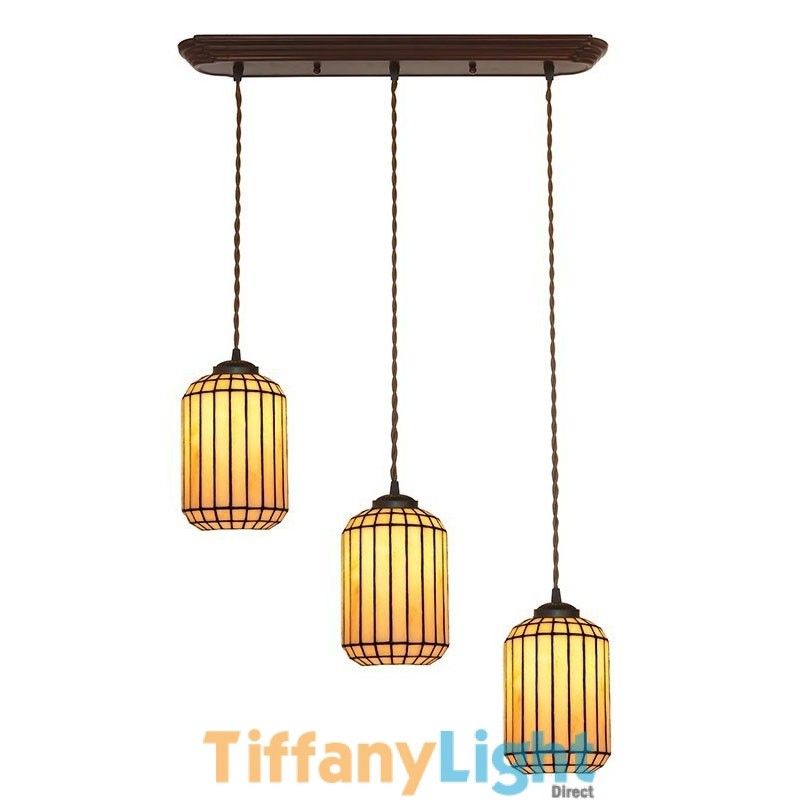 Vertical Stripe Lantern 3-Light Linear Tiffany Pendant Light
