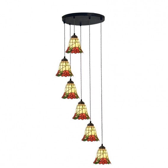 7-Inch Vine Red Flower 6-Light Staircase Tiffany Pendant Light