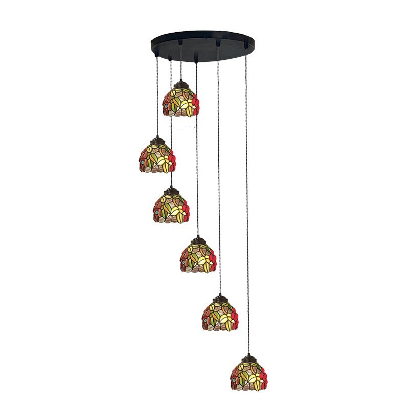 7-Inch Grape Orchard 6-Light Staircase Tiffany Pendant Light