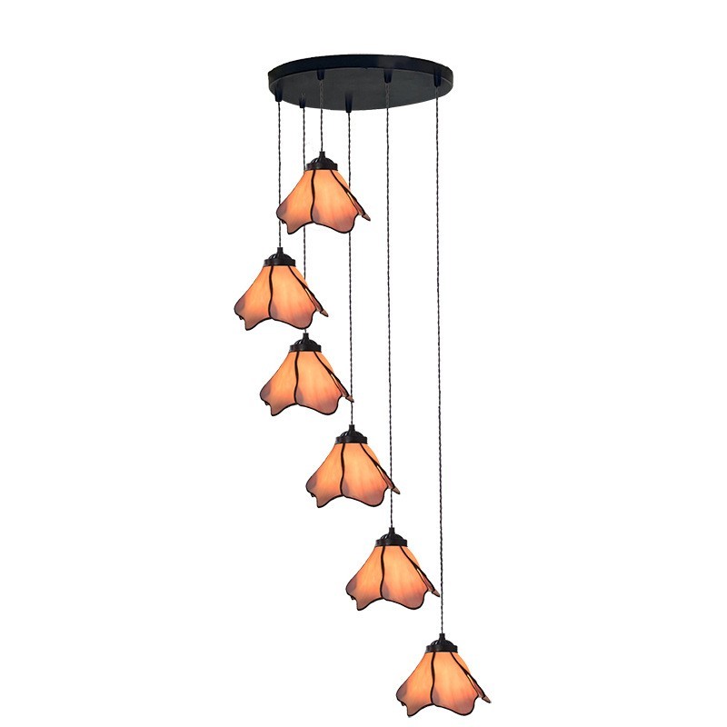 7-Inch Rounded Lotus 6-Light Staircase Tiffany Pendant Light