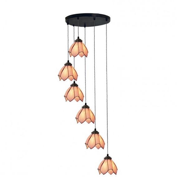7-Inch Pointed Lotus 6-Light Staircase Tiffany Pendant Light