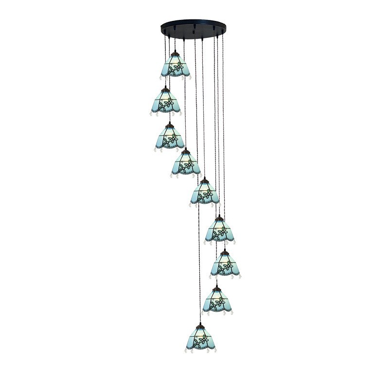 7-Inch Mediterranean Large 9-Light For High Ceilings Staircase Stairwell Tiffany Pendant Light