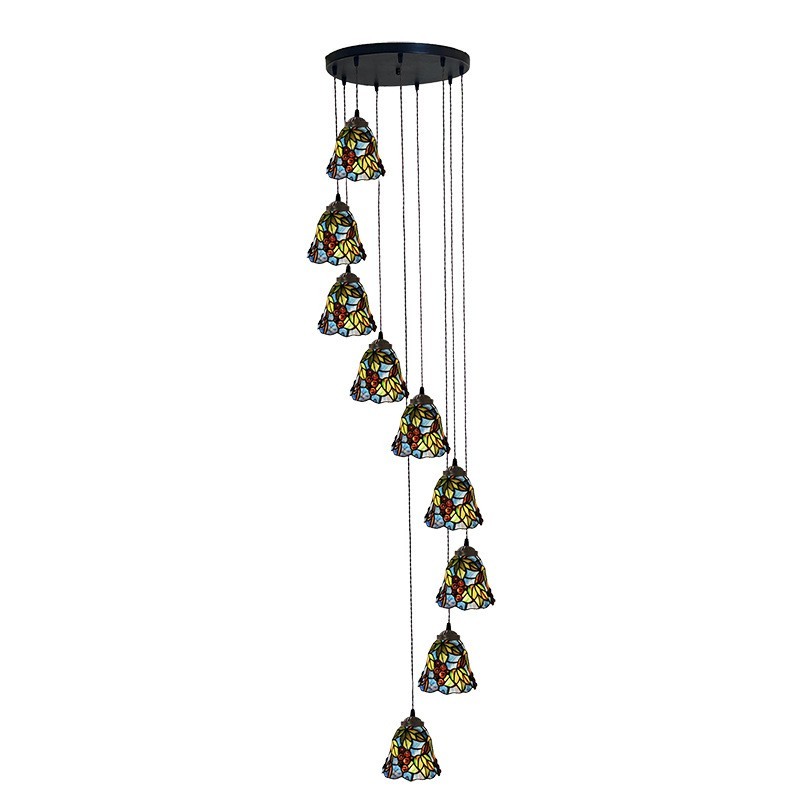 7-Inch Rustic Grape Large 9-Light For High Ceilings Staircase Stairwell Tiffany Pendant Light