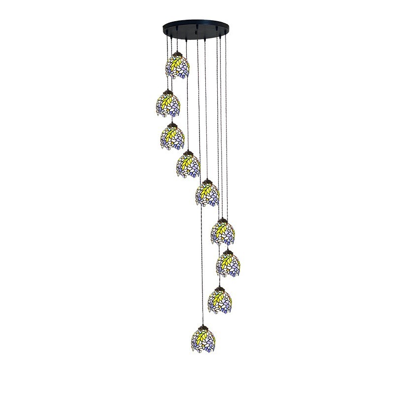 7-Inch Wisteria Love Large 9-Light For High Ceilings Staircase Stairwell Tiffany Pendant Light