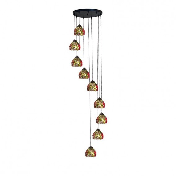 7-Inch Titian Orchard Large 9-Light For High Ceilings Staircase Stairwell Tiffany Pendant Light