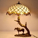 I bought this table lamp for the guest room, and the moss and cranberry stained glass creates a calm glow after dark. It looks especially nice before bed.