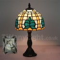 I bought this luxury table lamp for the console table, and the pearl and sepia stained glass makes the area feel more finished. It looks especially nice late in the evening.