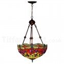 I wanted a more decorative Tiffany look for the entry corner, and this pendant light turned out to be a great fit. The glass becomes much richer after sunset.
