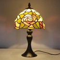 I bought this table lamp for the side table, and the golden and moss stained glass adds a softer evening mood. It looks especially nice once the main lights are off.
