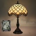 I wanted a more decorative Tiffany look for the bedroom, and this table lamp turned out to be a great fit. The glass becomes much richer as daylight fades.