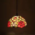 I bought this pendant light for the entry corner, and the smoky blue and cranberry stained glass adds a softer evening mood. It looks especially nice once the main lights are off.