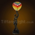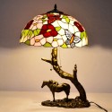I bought this table lamp for the guest room, and the ruby and cream stained glass gives the space a more inviting look. It looks especially nice after sunset.