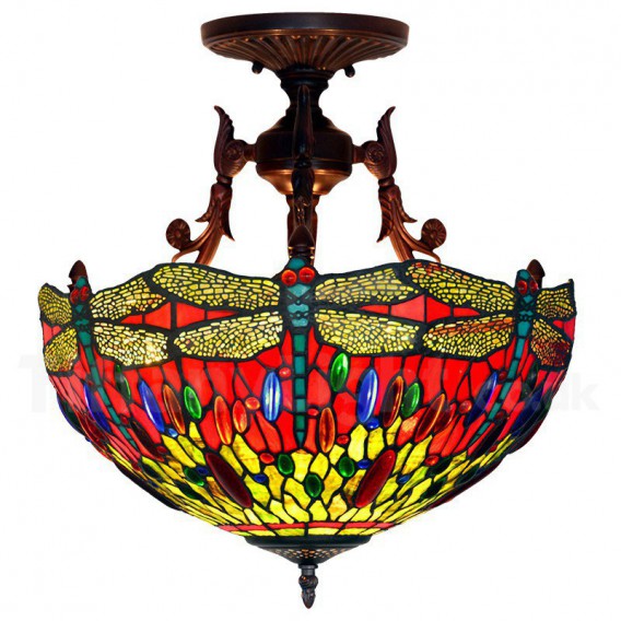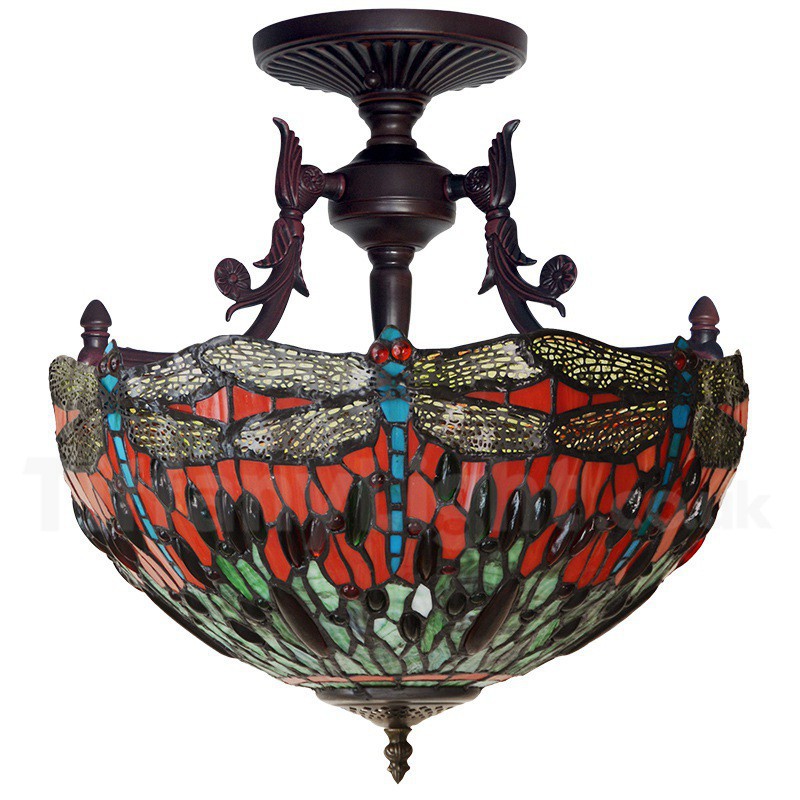 16 Inch Retro Dragonfly Tiffany Flush Mount Light