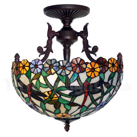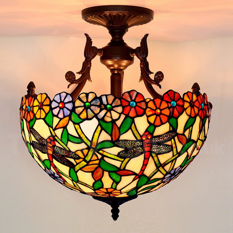 16 Inch Rustic Dragonfly Tiffany Flush Mount Light
