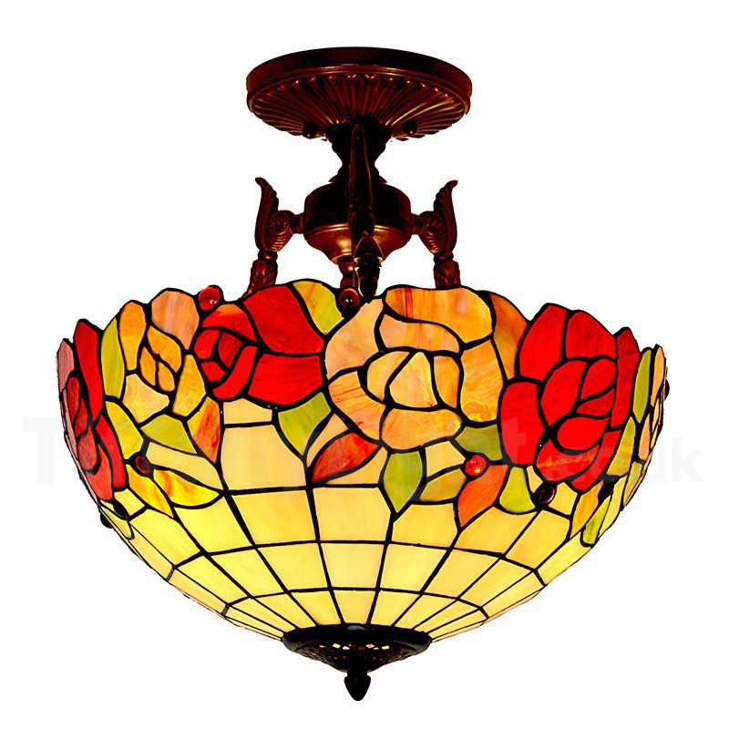 16 Inch Rural Tiffany Flush Mount Light