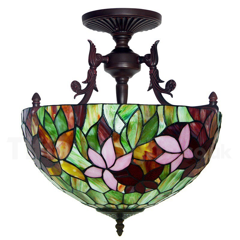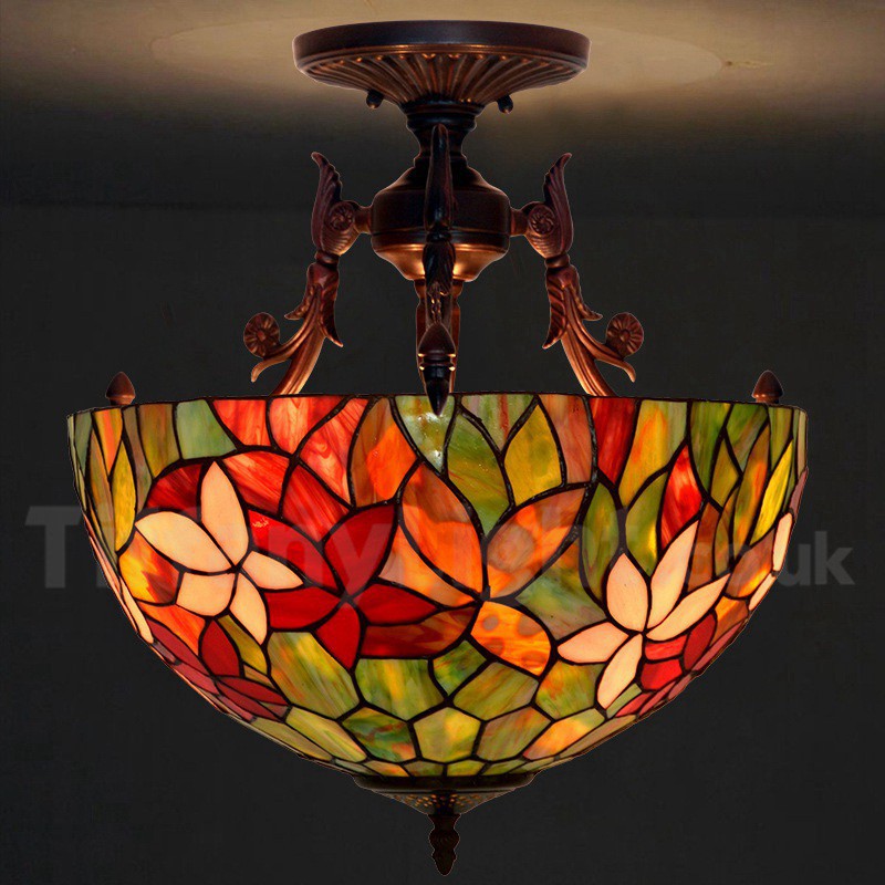 16 Inch Rustic Rural Tiffany Flush Mount Light