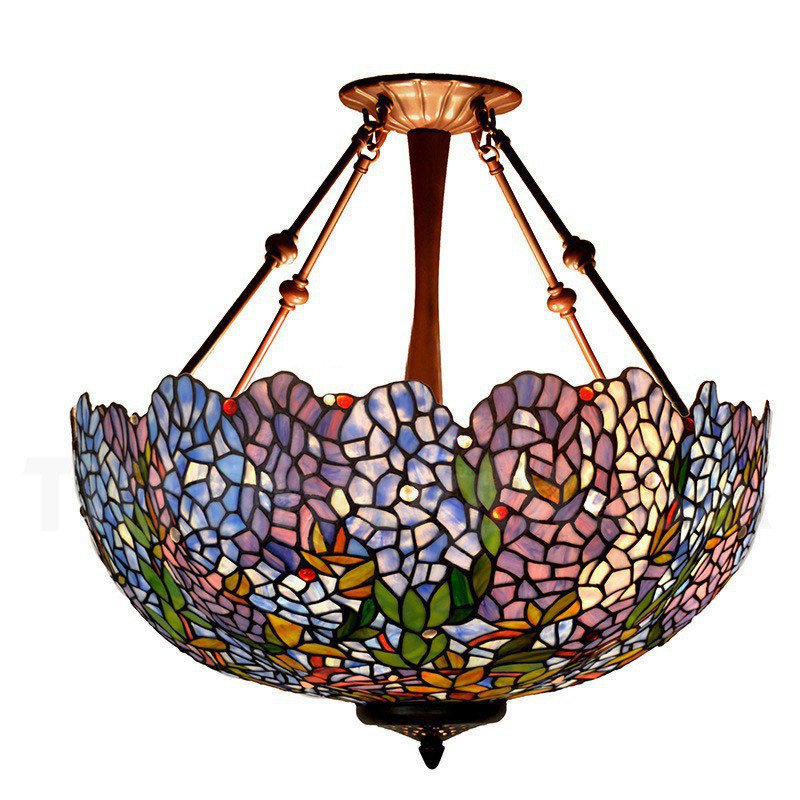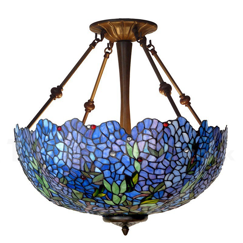 22 Inch Blue Wisteria Tiffany Flush Mount Light