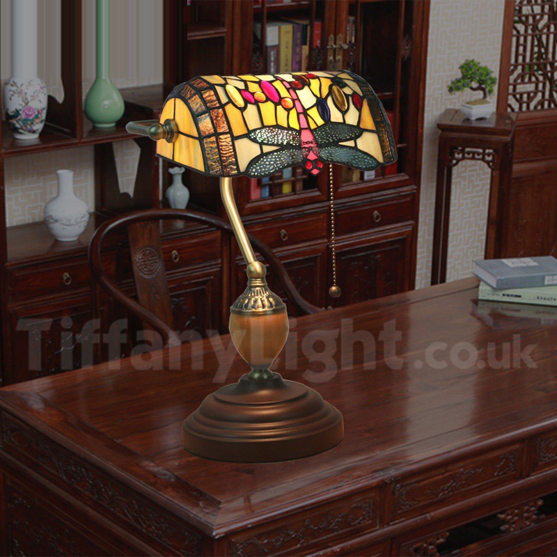 Dragonfly European Stained Glass Tiffany Banker Table Lamp